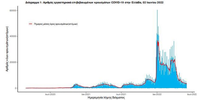 «Τα νέα εργαστηριακά επιβεβαιωμένα κρούσματα της νόσου(άτομα) που καταγράφηκαν τις τελευταίες 24 ώρες ήταν 3.769. Ο συνολικός αριθμός των ατόμων που νόσησαν ανέρχεται σε 3.461.025 (ημερήσια μεταβολή +0.1%), εκ των οποίων 48.8% άνδρες.