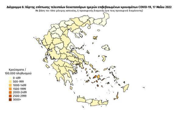 Αναλυτικά η κατανομή των 6.252 κρουσμάτων που ανακοίνωσε ο ΕΟΔΥ