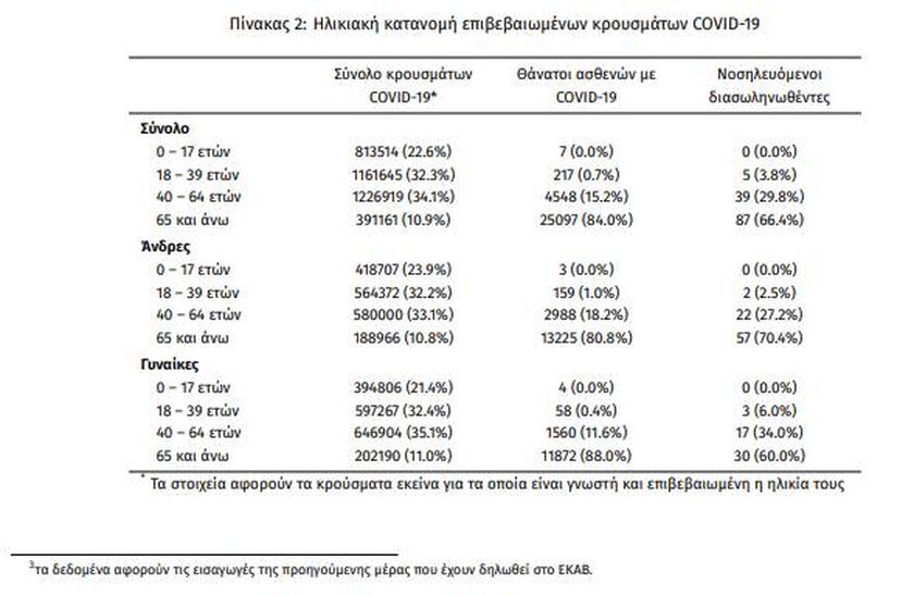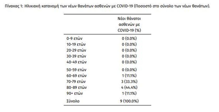 Η διάμεση ηλικία των κρουσμάτων είναι 37 έτη (εύρος 0.2 έως 112 έτη), ενώ η διάμεση ηλικία των θανόντων είναι 80 έτη (εύρος 0.2 έως 106 έτη)».