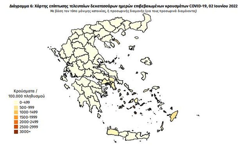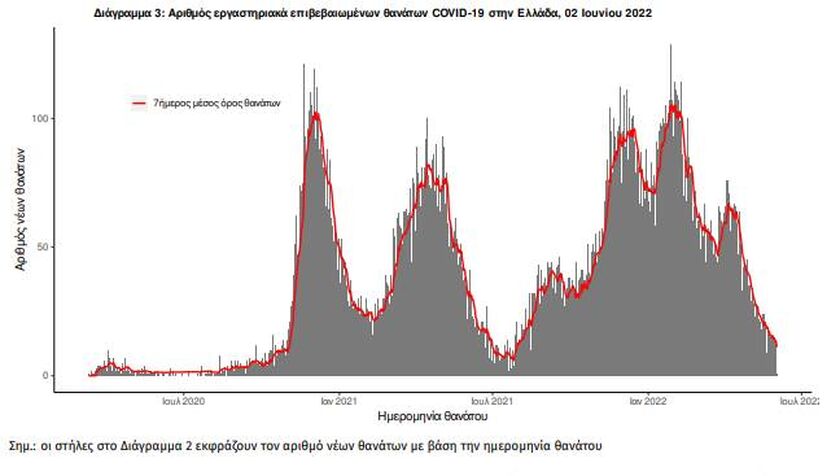 «Τα νέα εργαστηριακά επιβεβαιωμένα κρούσματα της νόσου(άτομα) που καταγράφηκαν τις τελευταίες 24 ώρες ήταν 3.769. Ο συνολικός αριθμός των ατόμων που νόσησαν ανέρχεται σε 3.461.025 (ημερήσια μεταβολή +0.1%), εκ των οποίων 48.8% άνδρες.