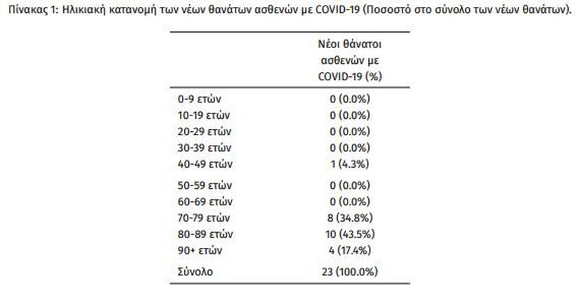 Οι νέοι θάνατοι ασθενών με COVID-19 είναι 23, ενώ από την έναρξη της επιδημίας έχουν καταγραφεί συνολικά 29.642 θάνατοι. Το 95.6% είχε