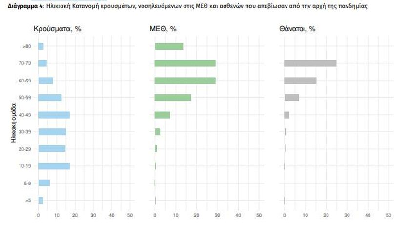 Οι εισαγωγές νέων ασθενών COVID-19 στα νοσοκομεία της επικράτειας είναι 100 (ημερήσια μεταβολή -20.63%). Ο μέσος όρος εισαγωγών του επταημέρου είναι 109 ασθενείς.Η διάμεση ηλικία των κρουσμάτων είναι 36 έτη (εύρος 0.2 έως 112 έτη), ενώ η διάμεση ηλικία των θανόντων είναι 80 έτη (εύρος 0.2 έως 106 έτη)».