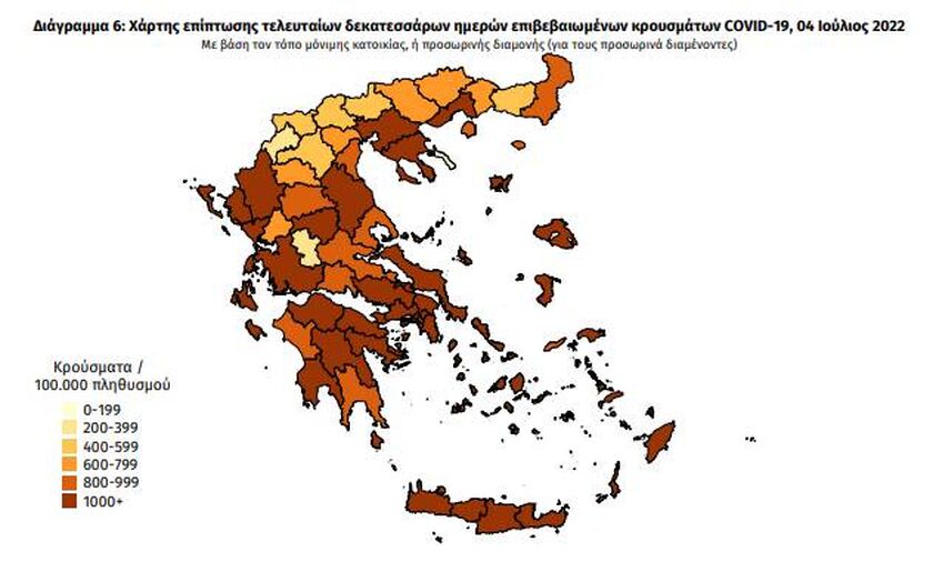 Σύμφωνα με τα στοιχεία του ΕΟΔΥ τα κρούσματα κατανέμονται σε όλη τη χώρα ως εξής:
