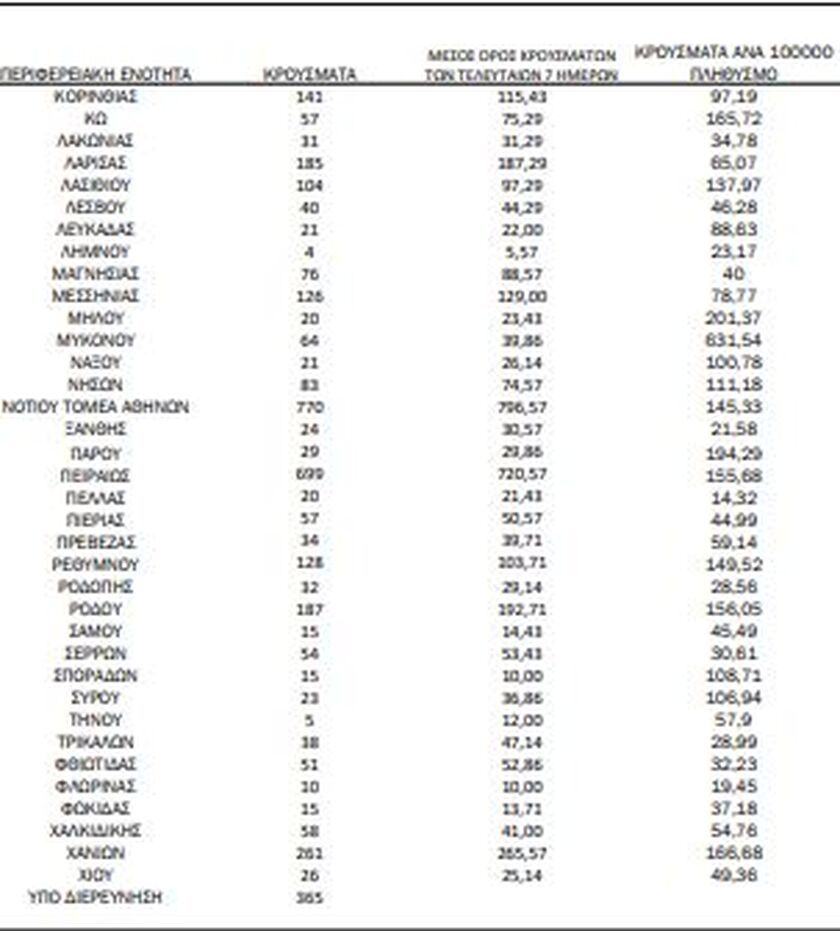 Σε υψηλά επίπεδα και σήμερα Τετάρτη, 29 Ιουνίου, τα νέα κρούσματα κορωνοϊού, σύμφωνα με την επίσημη ενημέρωση από τον ΕΟΔΥ.