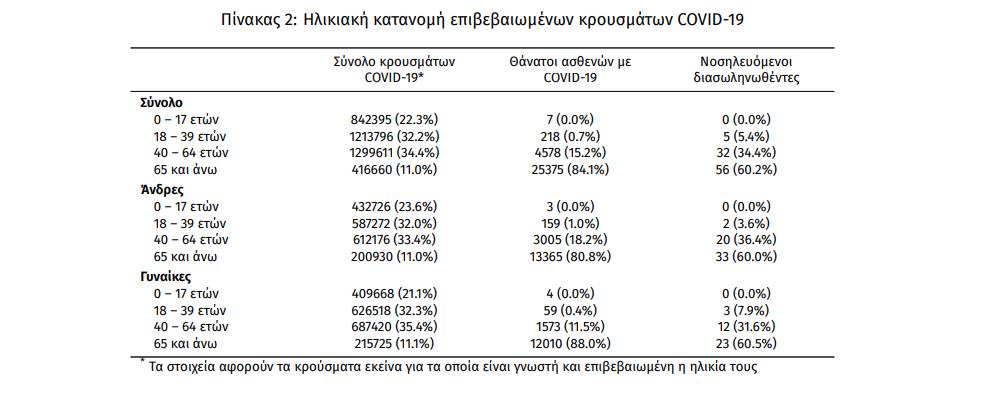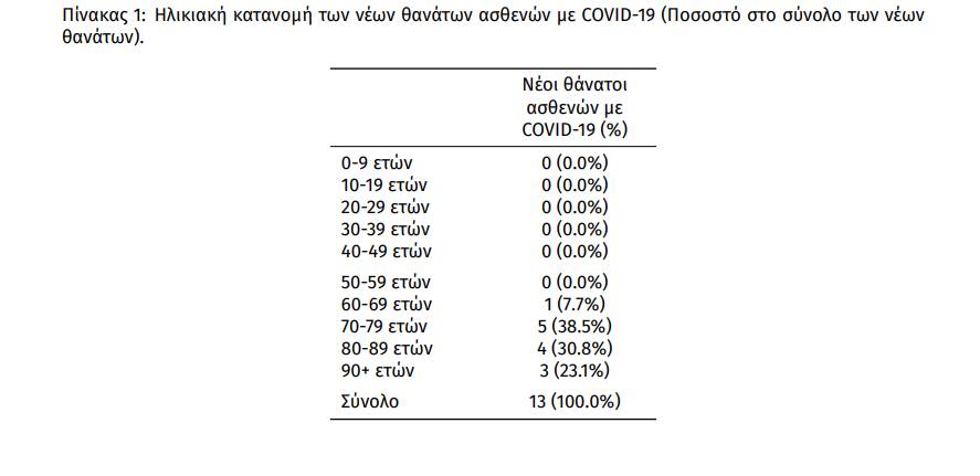 Πίνακας 1. Ηλικιακή κατανομή των νέων θανάτων ασθενών με COVID-19 (Ποσοστό στο σύνολο των νέων θανάτων).