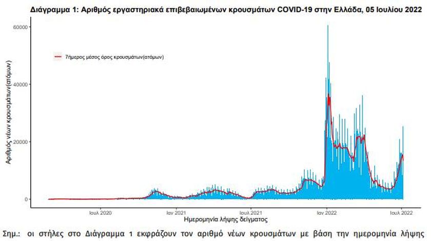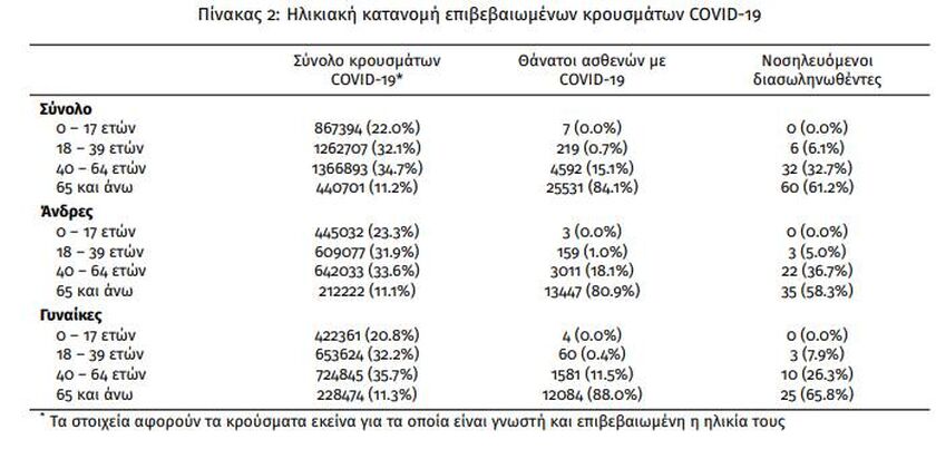 «Τα νέα εργαστηριακά επιβεβαιωμένα κρούσματα της νόσου (άτομα) που καταγράφηκαν τις τελευταίες 24 ώρες ήταν 25.566. Ο συνολικός αριθμός των ατόμων που νόσησαν ανέρχεται σε 3.755.074 (ημερήσια μεταβολή +0.7%), εκ των οποίων 48.5% άνδρες.