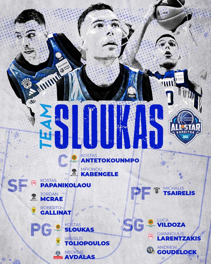 TEAM ΣΛΟΥΚΑΣ: Σλούκας, Παπανικολάου, Λαρεντζάκης, Τσαϊρέλης, Καμπεγκέλε, Τολιόπουλος, Αβδάλας, Γκάουντλοκ, Μακ Ρέι, Βιλντόζα, Γκάλινατ, Κ. Αντετοκούνμπο.