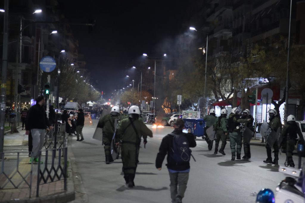 Ένταση μεταξύ δυνάμεων της αστυνομίας και αγνώστων επικράτησε για λίγη ώρα στο κέντρο της Αθήνας και της Θεσσαλονίκης, μετά από την πορεία για την τραγωδία στα Τέμπη.