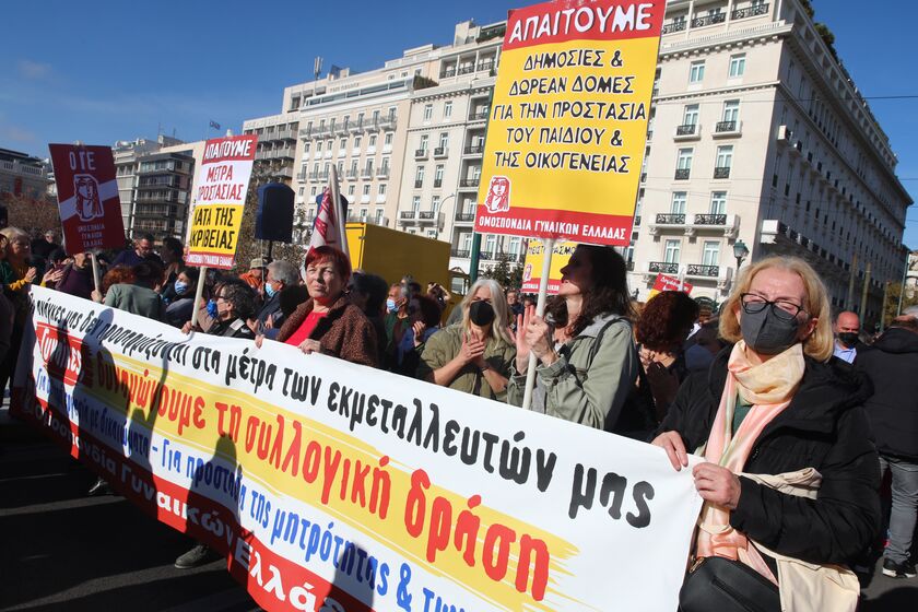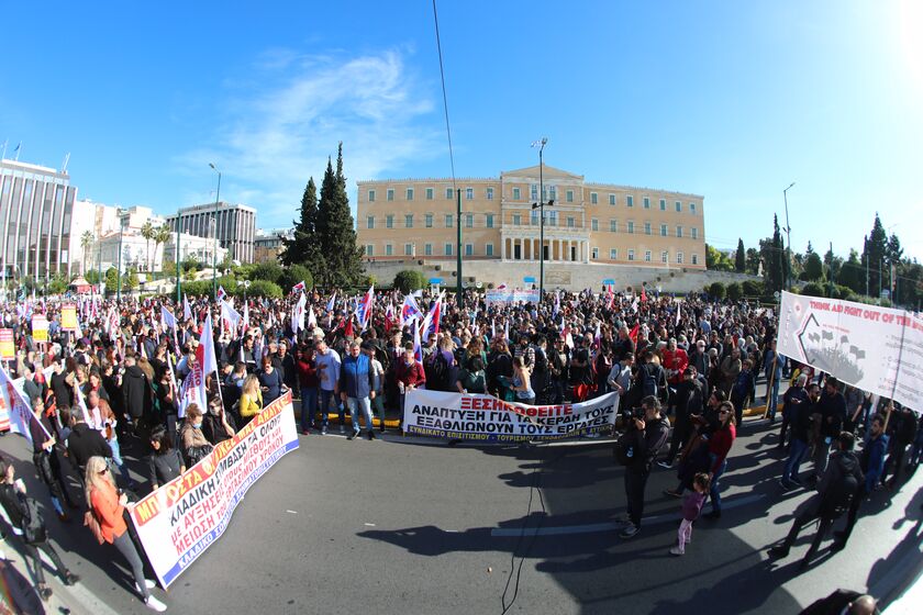 «Κλιμακώνουμε την πάλη μας για Συλλογικές Συμβάσεις, αυξήσεις στους μισθούς. Ενάντια στην ακρίβεια και τους πλειστηριασμούς» ήταν το σύνθημα που δέσποζε στο μαζικό συλλαλητήριο στην πλατεία Συντάγματος.