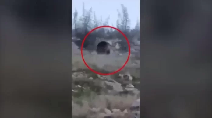 Όπως φαίνεται σε βίντεο που είδε το φως της δημοσιότητας, οι αρκούδες κάνουν την εμφάνισή τους και περνούν τον δρόμο, ενώ συνεχίζουν τη βόλτα τους ανεβαίνοντας την πλαγιά.
