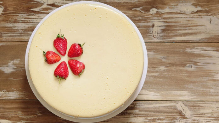 Ανακατέψτε όλα τα υλικά με ένα μίξερ και μεταφέρετε τα σε μια στρογγυλή φόρμα.