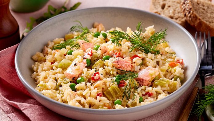 Κρεμώδες ριζότο με παρμεζάνα και σολομό