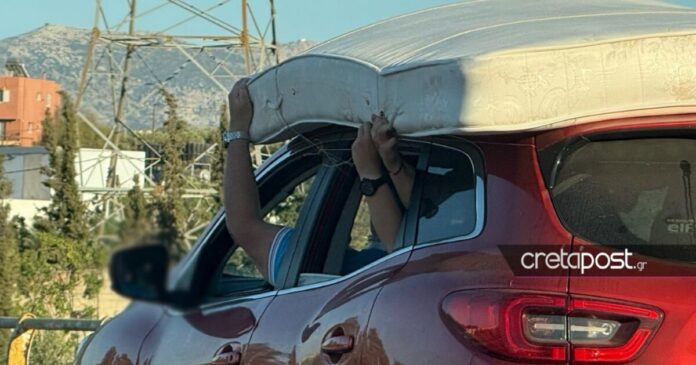 Όπως σημειώνει το cretapost.gr, το στρώμα ήταν απλά ακουμπισμένο στην οροφή και οι επιβάτες, συμπεριλαμβανομένου του οδηγού, το κρατούσαν με τα χέρια τους, τα οποία προεξείχαν από τα παράθυρα, εγείροντας σοβαρό κίνδυνο για την ασφάλεια των οχημάτων που ακολουθούσαν.