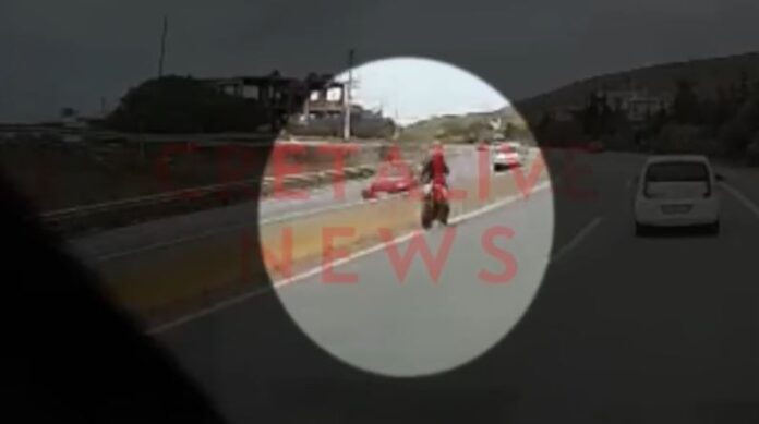 Ένα άκρως επικίνδυνο και τρομακτικό περιστατικό καταγράφηκε το μεσημέρι της Δευτέρας (26/5) στον Βόρειο Οδικό Άξονα Κρήτης (ΒΟΑΚ).