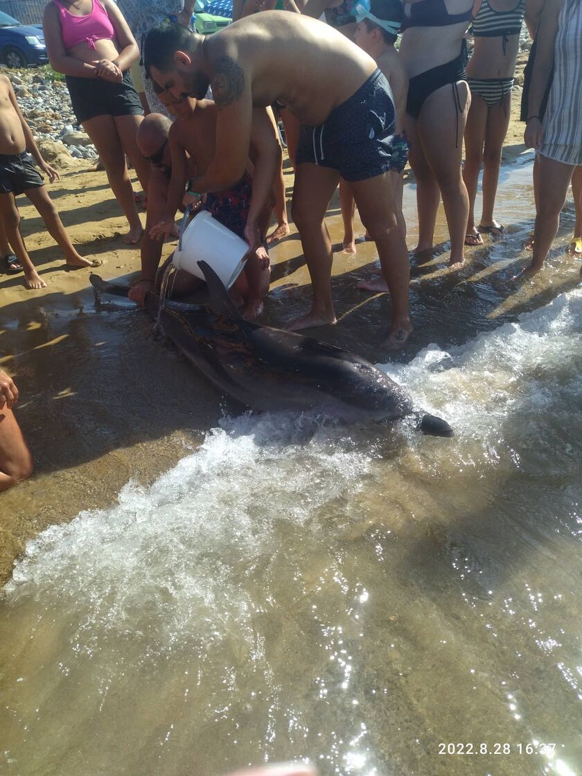 Δυστυχώς, όμως, οι δυνάμεις του το είχαν εγκαταλείψει και το δελφίνι ξεψύχησε στα χέρια των ανθρώπων που προσπαθούσαν με κάθε τρόπο να το βοηθήσουν.