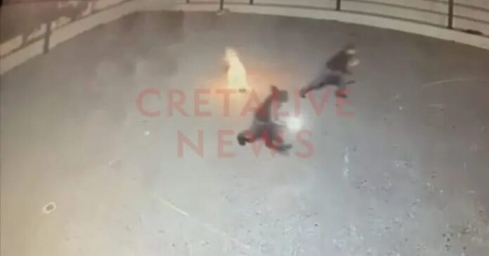 Βίντεο-ντοκουμέντο που δημοσιεύει το Cretalive καταγράφει τη στιγμή της έκρηξης του αυτοσχέδιου εκρηκτικού-εμπρηστικού μηχανισμού στην αυλή του σχολείου.