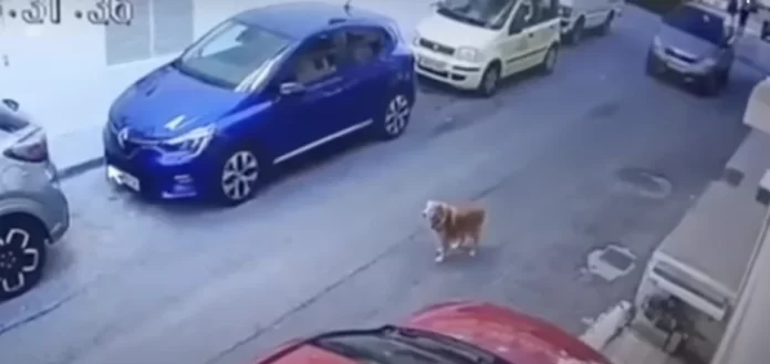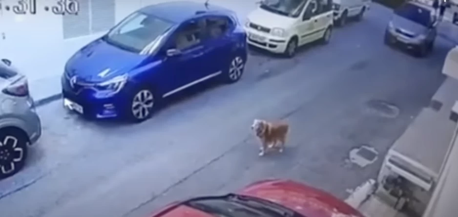 Η οδηγός ενός αυτοκινήτου που κινούνταν εκείνη την ώρα στο συγκεκριμένο στενό και όπως φαίνεται στο βίντεο είχε σε πλήρη ορατότητα τον σκύλο που βρισκόταν στη μέση του δρόμου.