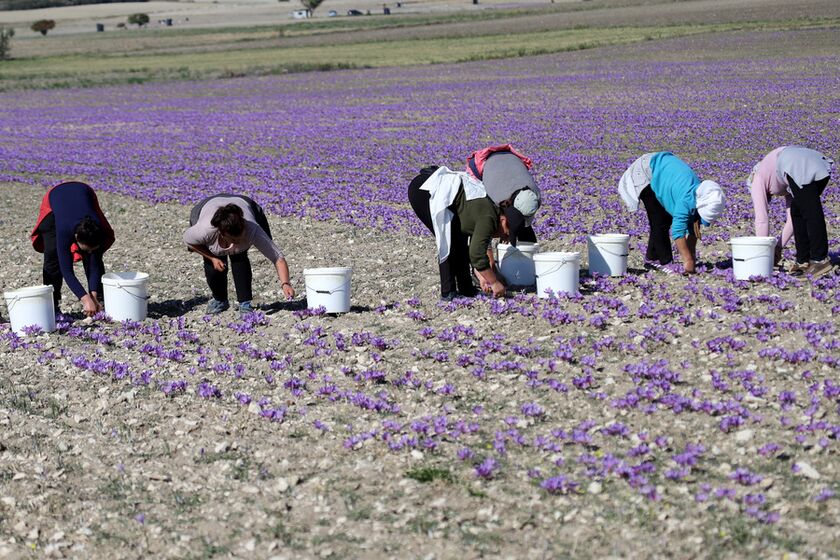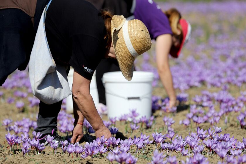 Το μάζεμα είναι επίπονο και κουραστικό. Ακολουθεί το λίχνισμα και το καθάρισμα, προκειμένου να εξαχθούν οι πολύτιμοι στήμονες Πηγή: ΑΠΕ-ΜΠΕ/ΔΗΜΗΤΡΗΣ ΣΤΡΑΒΟΥ