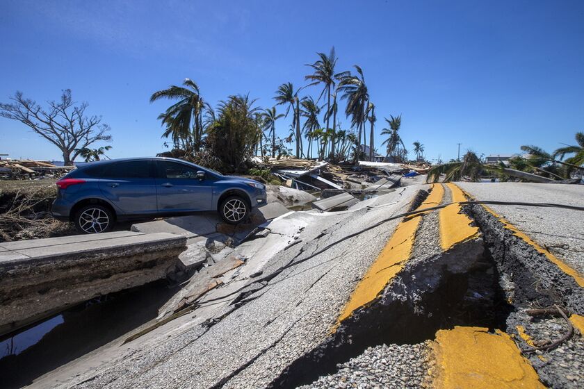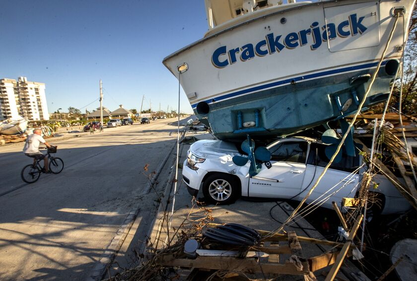 Ο Ίαν, ο οποίος συγκαταλέγεται στους ισχυρότερους κυκλώνες που έχουν πλήξει ποτέ τις ΗΠΑ, έσβησε από τον χάρτη ολόκληρες συνοικίες, κατέστρεψε γραμμές του δικτύου διανομής ηλεκτρισμού και γέφυρες καθώς σάρωνε τις νοτιοδυτικές ακτές της Φλόριντας από την Τετάρτη.