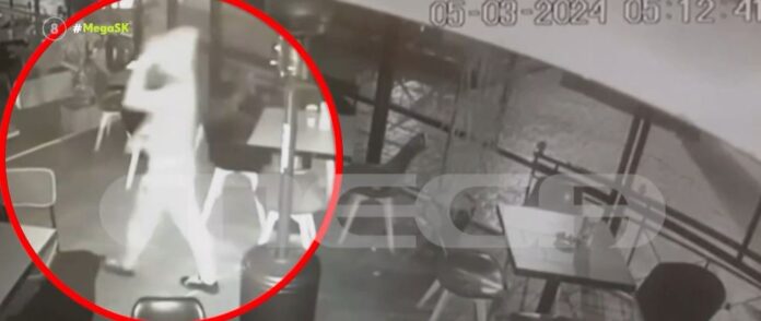Όπως φαίνεται στα πλάνα σε ένα κατάστημα τα ξημερώματα ο νεαρός πηδά στον εξωτερικό χώρο, πλησιάζει την πόρτα του μαγαζιού και με το σφυρί στο χέρι καταφέρνει να την παραβιάσει.