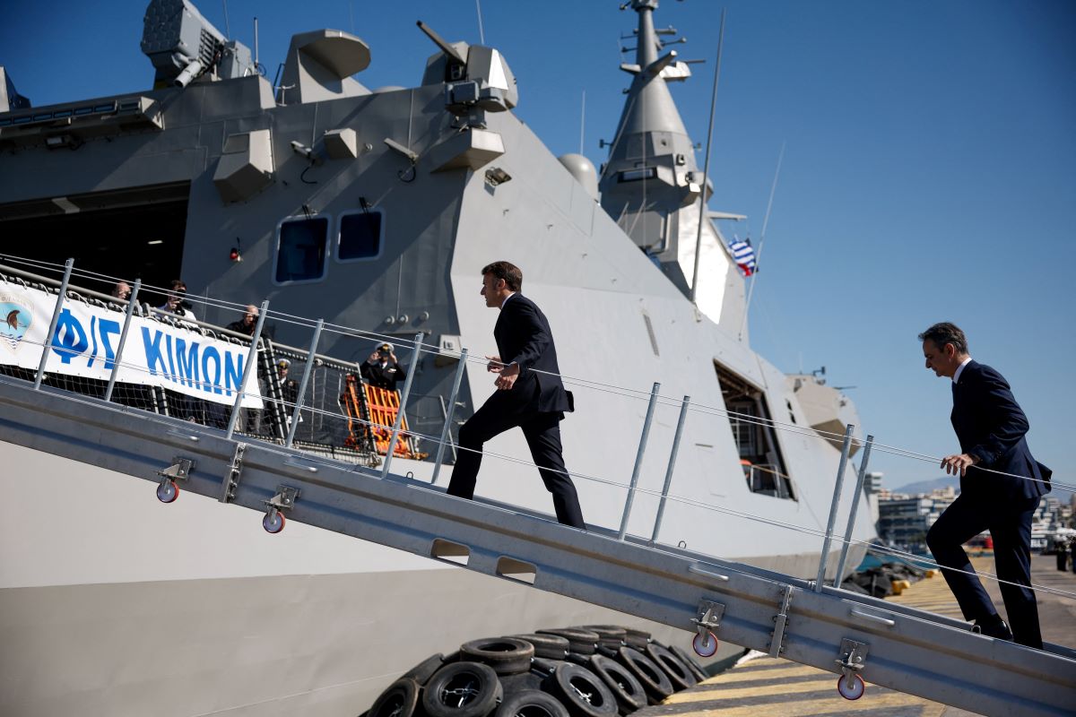 Επίσκεψη στη φρεγάτα «Κίμων» πραγματοποίησαν ο πρωθυπουργός Κυριάκος Μητσοτάκης και ο πρόεδρος της Γαλλίας, Εμανουέλ Μακρόν, στο λιμάνι του Πειραιά, το πρωί του Σαββάτου (25.4.26).