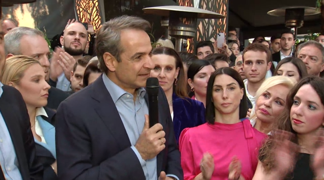 Ο Κυριάκος Μητσοτάκης πραγματοποιεί την πρώτη του προεκλογική συγκέντρωση στη Γλυφάδα μετά την τραγωδία των Τεμπών.