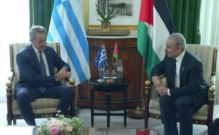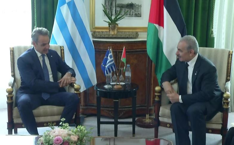 Ο Κυριάκος Μητσοτάκης συναντήθηκε με τον πρωθυπουργό της Παλαιστινιακής Αρχής, Μοχάμαντ Σταγιέχ, με τον οποίο συζήτησαν για την ανθρωπιστική κατάσταση στη Λωρίδα της Γάζας.