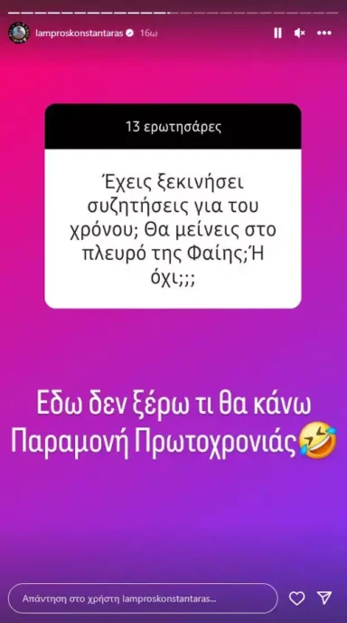 Ο Λάμπρος Κωνσταντάρας έκανε ένα Q&A στο instagram και απάντησε σε ερωτήσεις των διαδικτυακών του φίλων.