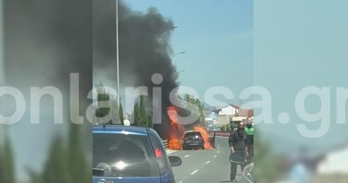 Το τροχαίο έγινε στη λ. Καραμανλή στη Λάρισα, γύρω στη 1 το μεσημέρι. Σε βίντεο που έφερε στο φως το onlarissa.gr, φαίνεται το αυτοκίνητο να έχει τυλιχθεί στις φλόγες ενώ πλήθος κόσμου να παρακολουθεί τη φωτιά.