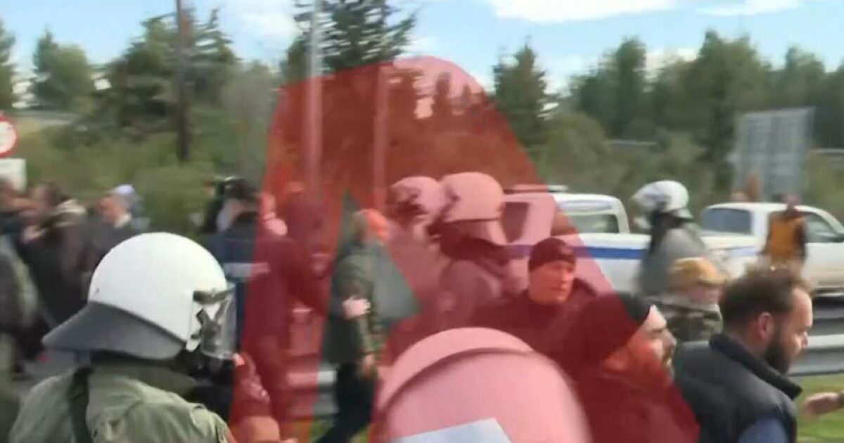 Οι αγρότες ζητούν από τις αστυνομικές δυνάμεις να απομακρυνθούν για να μην έρθουν σε σύγκρουση, τη στιγμή που από άλλα σημεία προσπαθούν να προσεγγίσουν την Εθνική Οδό.