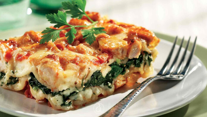 Λαζάνια με σπανάκι, κοτόπουλο και μανιτάρια