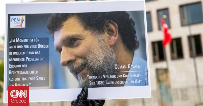Ο Οσμάν Καβάλα ήταν προφυλακισμένος εδώ και τεσσεράμισι χρόνια χωρίς να έχει καταδικαστεί, παρά τις απειλές του Συμβουλίου της Ευρώπης ότι θα επιβάλει κυρώσεις στην Άγκυρα.