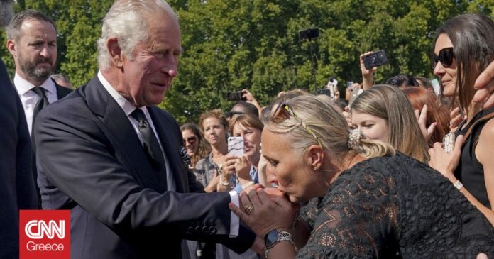Ο Κάρολος, επιστρέφοντας από το Μπαλμόραλ της Σκωτίας μαζί με τη σύζυγό του Καμίλα, κατέβηκε από το αυτοκίνητο υπό τις επευφημίες του πλήθους που άρχισε να τραγουδάει τον ύμνο «Ο Θεός σώζει τον βασιλιά». Ένας από τους παρευρισκόμενους φώναξε μάλιστα «Σ’ αγαπάμε, Κάρολε». Στη συνέχεια προχώρησε προς τις πύλες και είδε τα αμέτρητα μπουκέτα που είχαν αφήσει στα κάγκελα των Ανακτόρων Λονδρέζοι και τουρίστες.