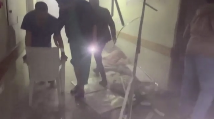 «Μας πυροβολούν, τα κεφάλια κάτω! Καλυφθείτε όλοι! Πάμε, βγείτε έξω!», ακούγεται να λέει ο γιατρός του νοσοκομείου.
