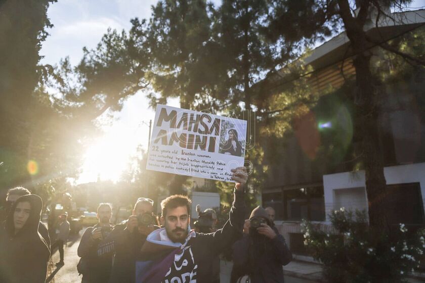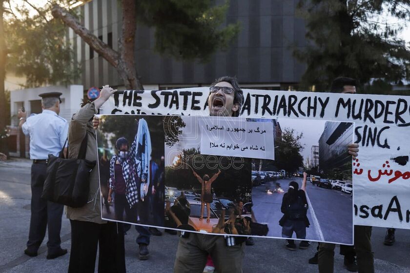 Η συγκέντρωση στην ιρανική πρεσβεία της Αθήνας είχε προγραμματιστεί για τις 6 το απόγευμα, όπου και έδωσαν το παρών περίπου 20 άτομα με βασικό σύνθημα «Γυναίκα, Ζωή, Ελευθερία».