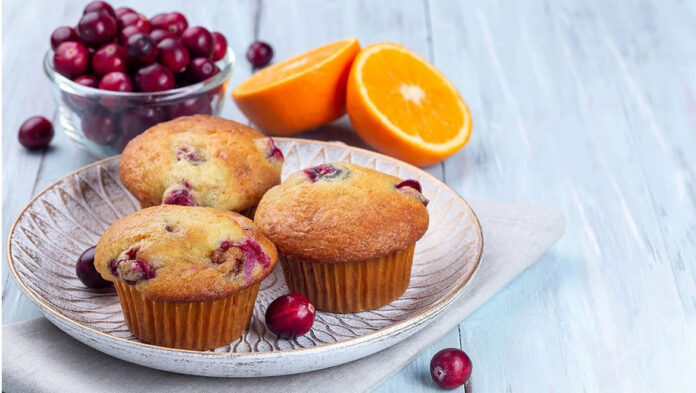 Σε ένα βήμα προσθέστε τα ξηρά υλικά, τα ψιλοκομμένα κράνμπερι και τα πεκάν και χρησιμοποιώντας μια λαστιχένια σπάτουλα ανακατέψτε για λίγο. Το υπερβολικό ανακάτεμα θα κάνει τα μάφινς σκληρά.