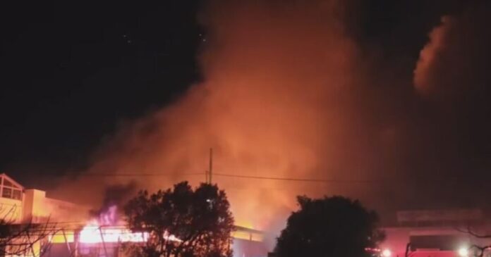 Για λόγους προστασίας από τους πυκνούς καπνούς, στάλθηκε μήνυμα από το 112 στους κατοίκους της περιοχής, ενώ οι πυροσβεστικές δυνάμεις δίνουν πολύωρη μάχη με τις φλόγες που έχουν “καταπιεί” το εργοστάσιο πλαστικών στο Μενίδι.