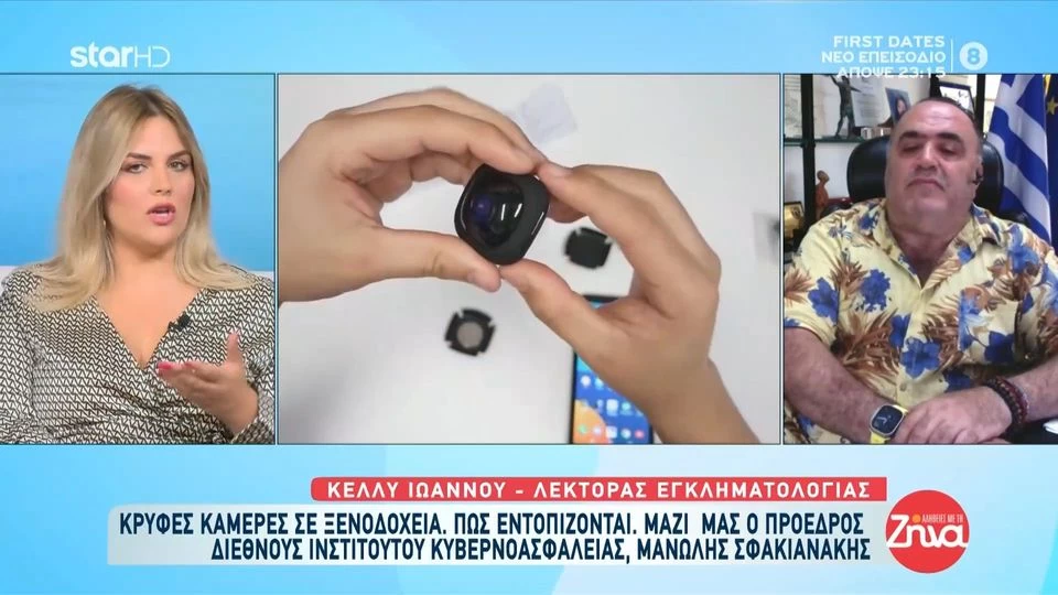 «Εύκολα μπορεί να βρει κάποιος αν υπάρχουν κρυφές κάμερες σε ξενοδοχεία» είπε ο κ. Σφακιανάκης και ανέφερε χαρακτηριστικά τα πιθανά σημεία να τις κρύψει κάποιος: