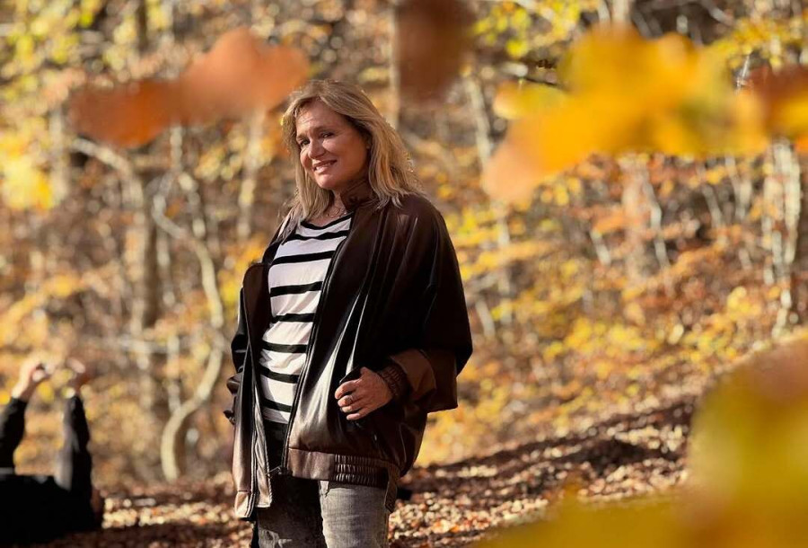 Η Μαρία, χαμογελαστή και χαλαρή, απολαμβάνει το περπάτημα στο δάσος, κάθεται πάνω σε βράχους, αλληλεπιδρά με το τοπίο και δείχνει να αφήνεται πλήρως στη στιγμή, χωρίς ίχνος στημένου ύφους.