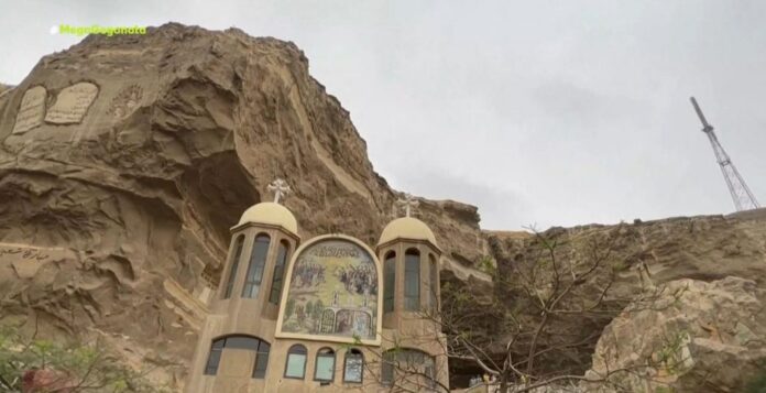 Εκατοντάδες Κόπτες Ορθόδοξοι Χριστιανοί συγκεντρώθηκαν στο ιστορικό μοναστήρι του Αγίου Σίμωνα του Βυρσοδέψη για να γιορτάσουν την Κυριακή των Βαΐων στην τοποθεσία που είναι σκαλισμένη στην καρδιά ενός βουνού σε γειτονιά του Καΐρου.