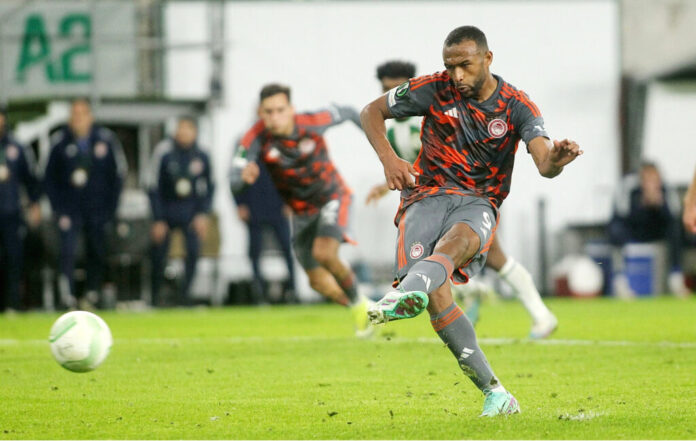 H στιγμή που ο Ελ Κααμπί εκτελεί το πέναλτι το οποίο κέρδισε ο Ολυμπιακός στο τελευταίο λεπτό του πρώτου ημιχρόνου (ΙΝΤΙΜΕ Sports)
