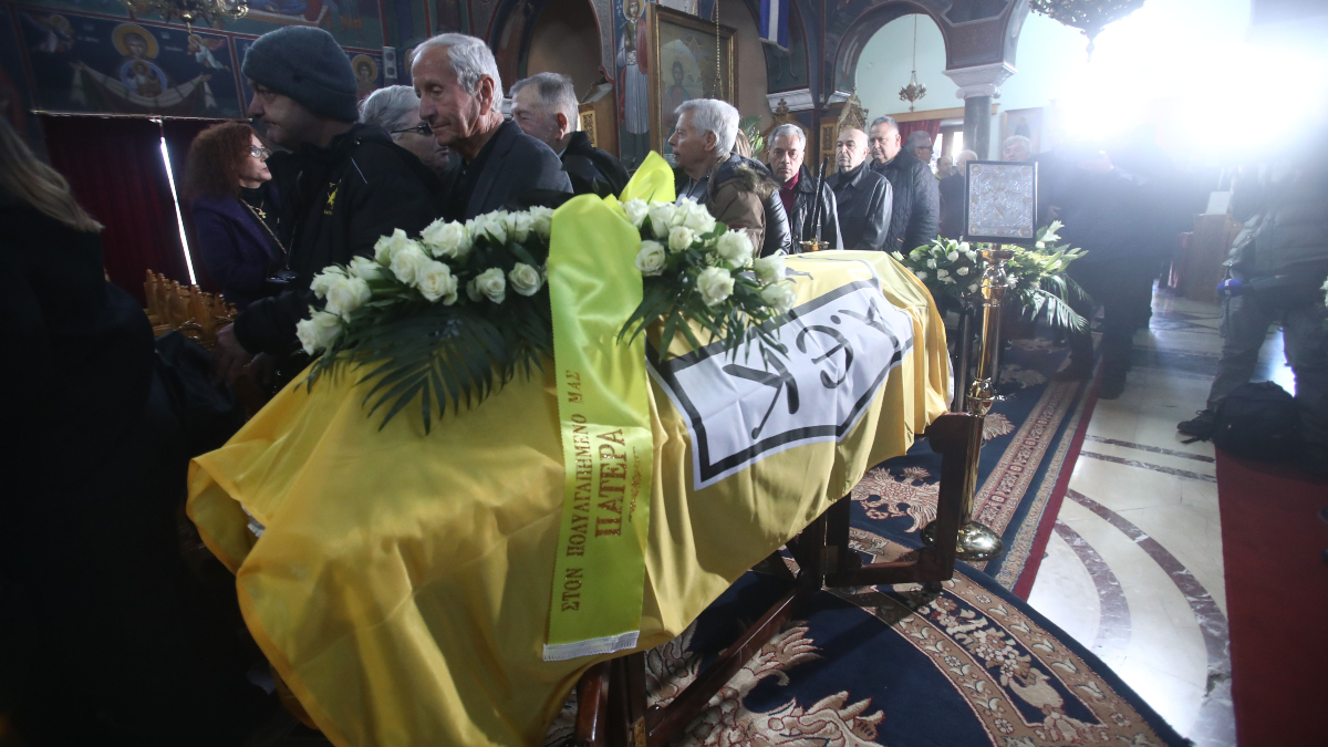 Η σορός του μεταφέρθηκε υπό τον ήχο του ύμνου της ΑΕΚ, ενώ ήταν τυλιγμένη με την σημαία της ομάδας που υπηρέτησε και τόσο αγάπησε.