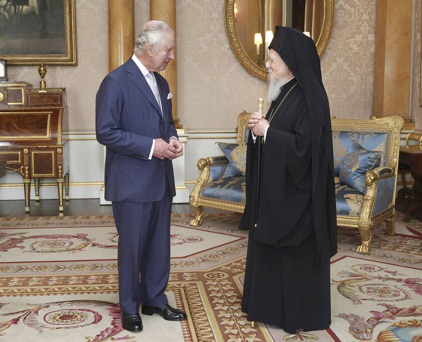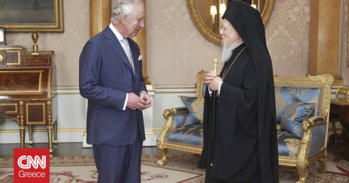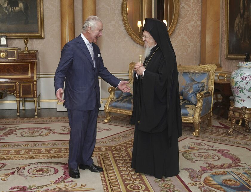 Κατά τη διάρκεια της ημίωρης συνάντησής τους, ο Πατριάρχης εξέφρασε προς τον Βασιλιά της Βρετανίας, και εκ του σύνεγγυς, τα συλλυπητήριά του για τον θάνατο της μητέρας του, βασίλισσας Ελισάβετ Β’, καθώς και τις θερμότερες ευχές του για επιτυχή και καρποφόρα άσκηση των νέων υψηλών καθηκόντων του.