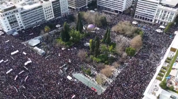 Η εικόνα από ψηλά αποτυπώνει το μέγεθος του πλήθους που πλημμύρισε το μεσημέρι το κέντρο της Αθήνας. Άνθρωποι κάθε ηλικίας, από όλες τις κοινωνικές ομάδας ένωσαν τις φωνές και απαίτησαν να ριχτεί φως στα αίτια της τραγωδίας.