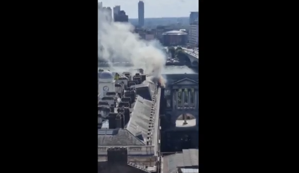 Τεράστια σύννεφα καπνού υψώθηκαν στον ουρανό αμέσως μετά την πυρκαγιά που ξέσπασε στο εμβληματικό κτίριο Somerset House του Λονδίνου.