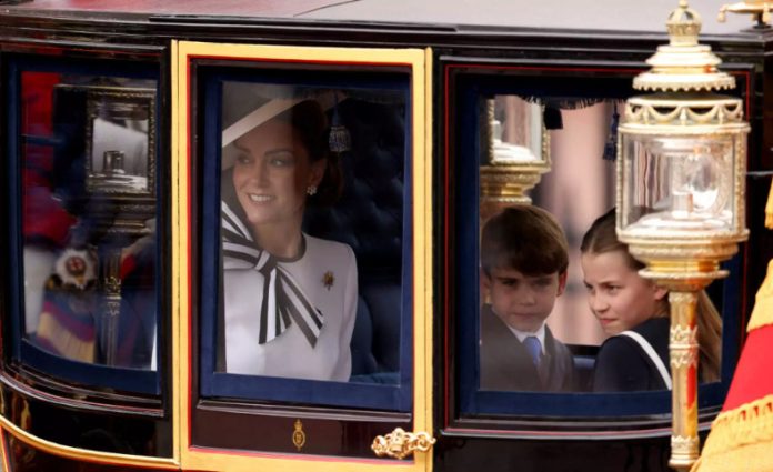 Ντυμένη στα λευκά η πριγκίπισσα της Ουαλίας, που τους τελευταίους μήνες υποβάλλεται σε θεραπεία για τον καρκίνο, επιβιβάστηκε μαζί με τα τρία της παιδιά σε άμαξα δείχνοντας σε πολύ κατάσταση.