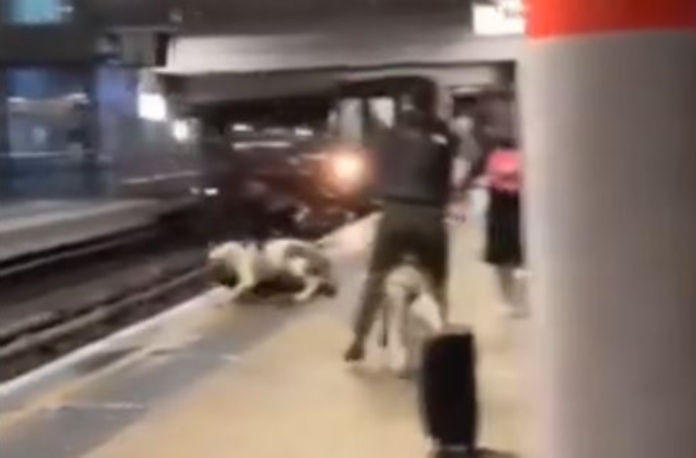 Tο ένα από τα δύο σκυλιά επιτέθηκε στον άντρα την ώρα που βρισκόταν στην άκρη της αποβάθρας. Ο άντρας έπεσε κάτω αλλά ευτυχώς δεν κατέληξε στις ράγες, όπου θα μπορούσε να χάσει τη ζωή του μιας και μερικά δευτερόλεπτα μετά πέρασε το τρένο από δίπλα του.