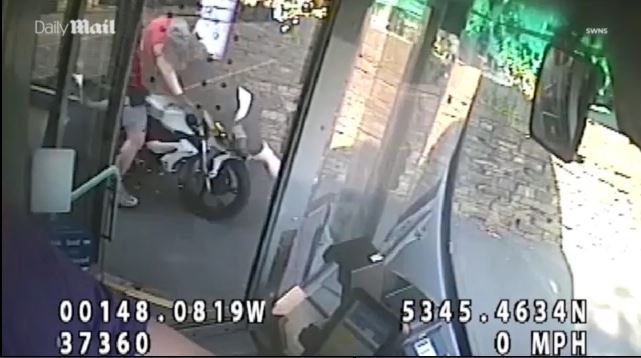 Όπως αποτυπώνεται στο βίντεο από την κάμερα του λεωφορείου, η νεαρή γυναίκα, μόλις αυτό έχει σταματήσει σε στάση, κατεβαίνει από το όχημα και εκείνη την στιγμή περνάει μία μηχανή η οποία την παρασέρνει.