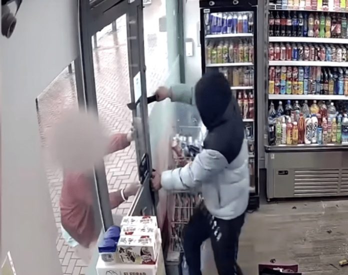 Συγκεκριμένα, το περιστατικό συνέβη στο Μπέρμιγχαμ της Βρετανίας. Τα πλάνα που κατέγραψε η κάμερα δείχνουν τον έναν από τους μασκοφόρους ληστές να ζητά από τον υπάλληλο να αδειάσει το ταμείο απειλώντας να τον χτυπήσει με τη μασέτα, ενώ ένας από τους συνεργάτες του κλέβει προϊόντα από τα ράφια.