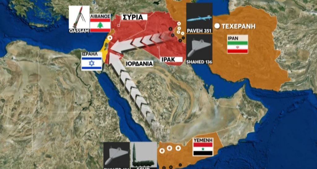 Περισσότεροι από 300 drones και βαλιστικοί πύραυλοι απογειώθηκαν γύρω στις 11 το βράδυ του Σαββάτου από τα ιρανικά εδάφη με κατεύθυνση στρατηγικές τοποθεσίες του Ισραήλ. Ακολούθησαν και βαλλιστικοί πύραυλοι.